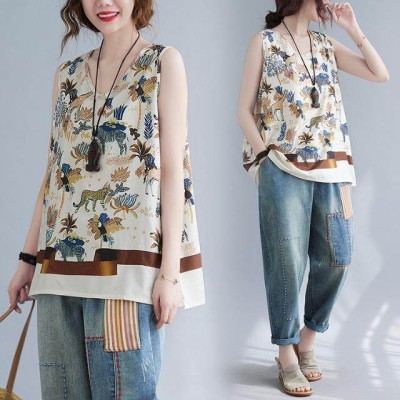 WhiteTime V领上衣女式无袖背心T恤女式外穿大号女式夏季背心女式夏季薄款紧身裤女式301T0852