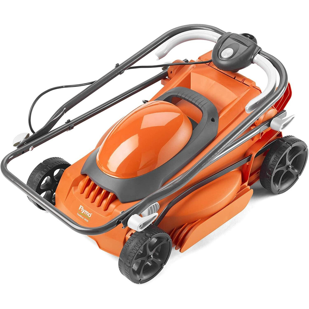 - The Flymo EasiMow 380R is a 38cm electric wheeled rotary lawnmower that is equipped with a powerful 1600W motor.